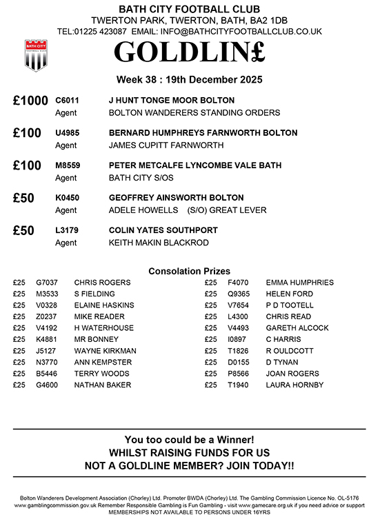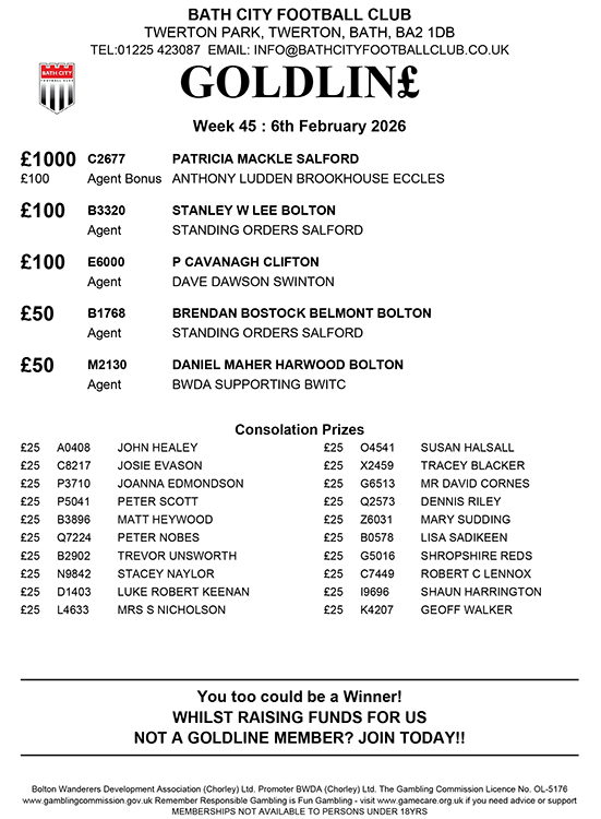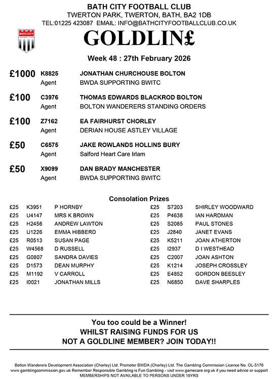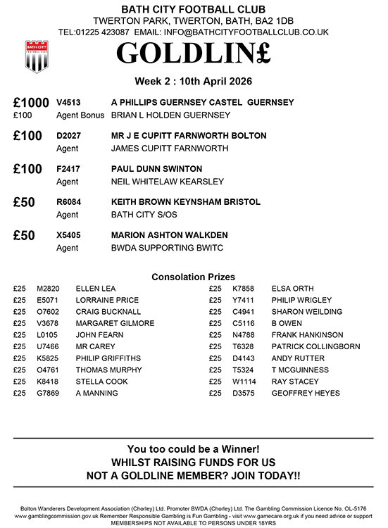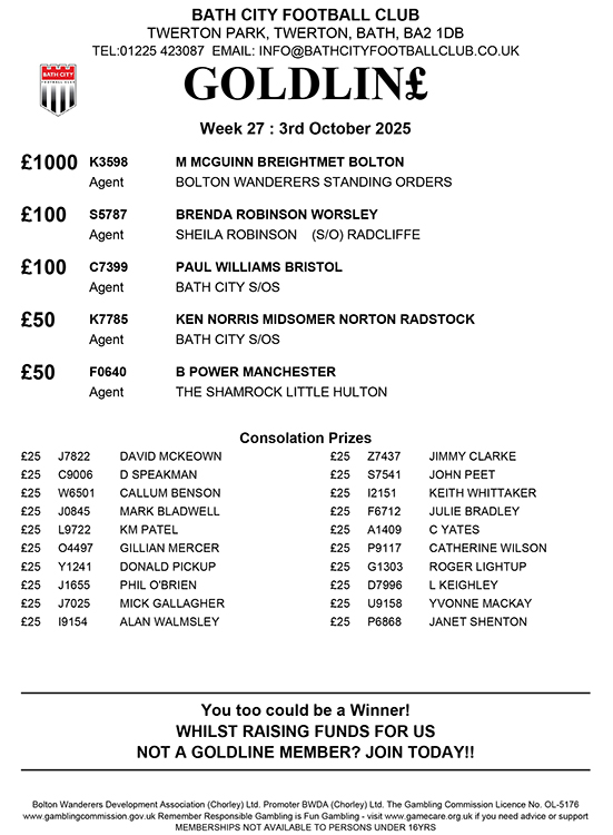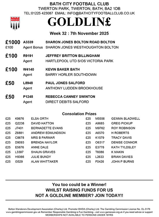 It’s just £4.34 per month by Standing Order and you’ll be in with a chance of winning £1,000 or 24 other prizes from £25 to £500. 70p of every £1 you stake goes direct to Bath City FC and, if we could double our membership, we’d generate some £25k per year to support the club.